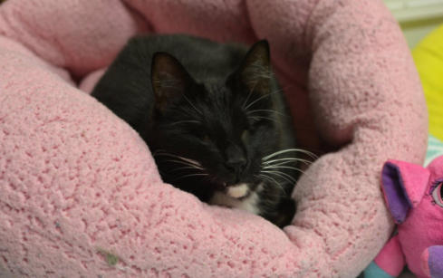 she was a tiny, helpless kitten rescued from a fence at the county