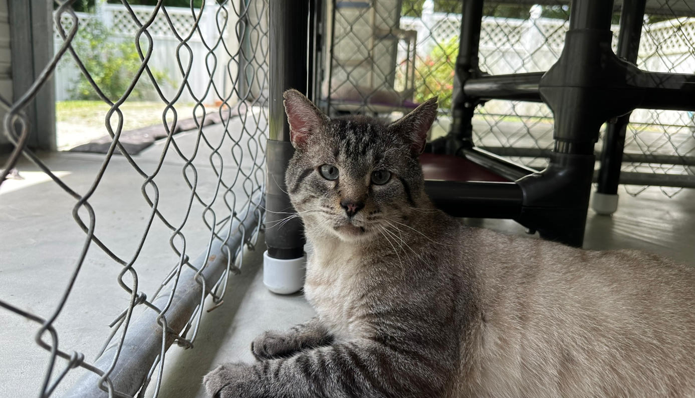 Chief is a blue-eyed Siamese cat who was found as a stray in Burlington, North
