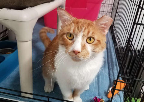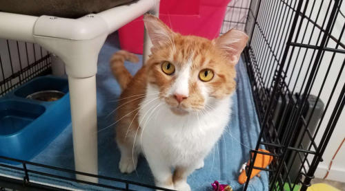 4/2019 Dennis is a leukemia positive kitty who came to us from Memphis. His former owner’s home was being foreclosed on and she was desperate for a place for him to go.He is a big friendly kitty who loves to be loved on. We are enjoying getting to know him.You may watch him Live on his Pet Cam HEREHe is in House 2 Room 1