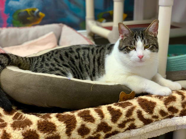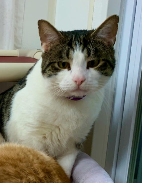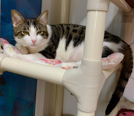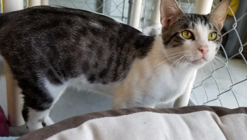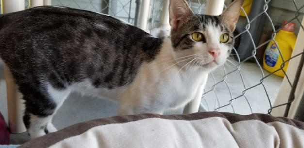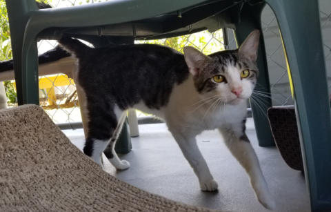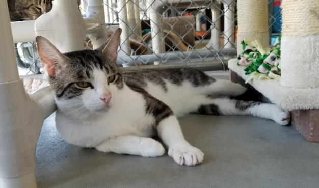 6/19 Dobby is a leukemia positive kitty who came to us from a rescue in Georgia.Dobby was an owner surrender to a high kill animal control center. He was pulled from animal control to be transported to another rescue. When he tested FELV+ that rescue canceled his spot. The rescue that had pulled him had no foster homes available (they are a small group that focuses on TNR). Not only did they drive 6 hours to bring him to us, they sponsoredhim for 2 years. They rock in our book!He is a super friendly fellow and likes other cats. He is settling in nicely with the other cats. You may watch him live on his camera: House 2 Room 1