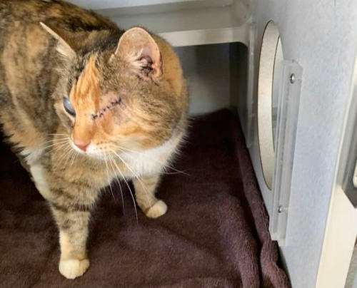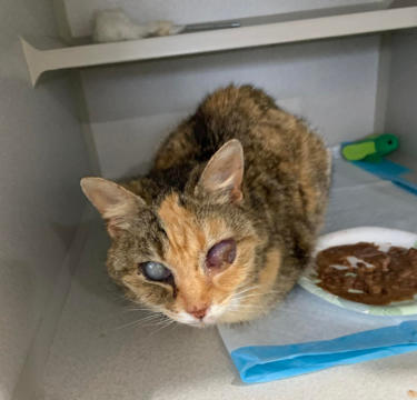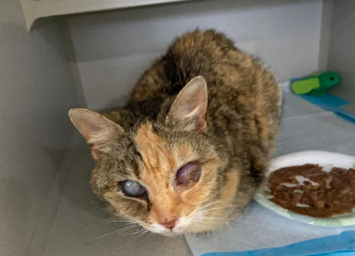 First things first, she removed Emma's damaged eye and spayed her. After that,