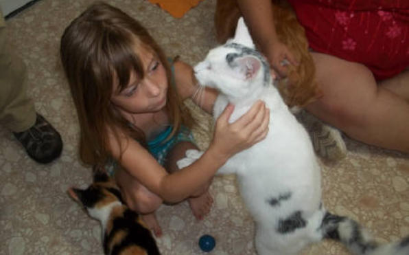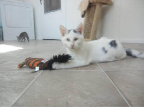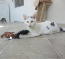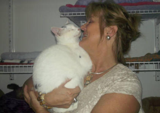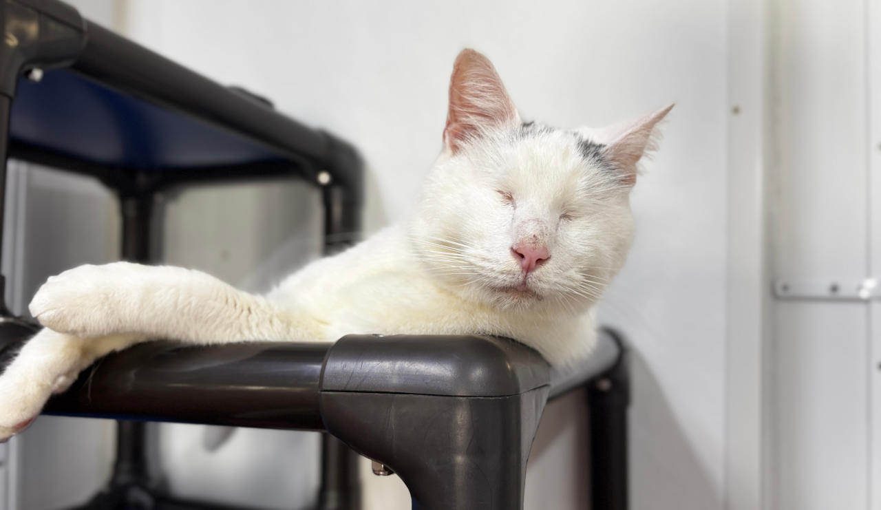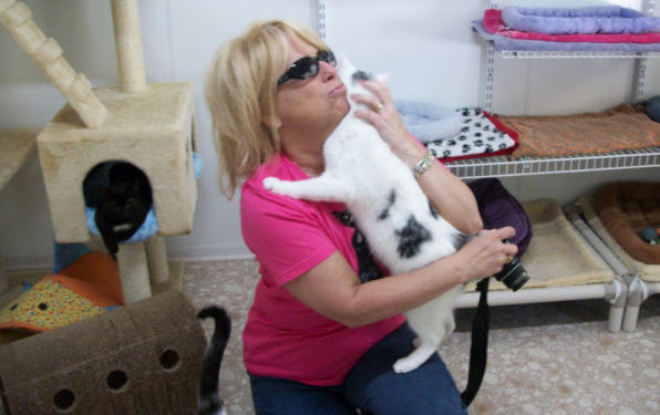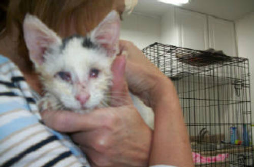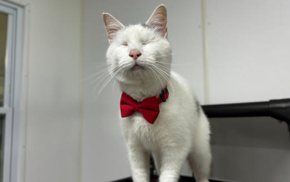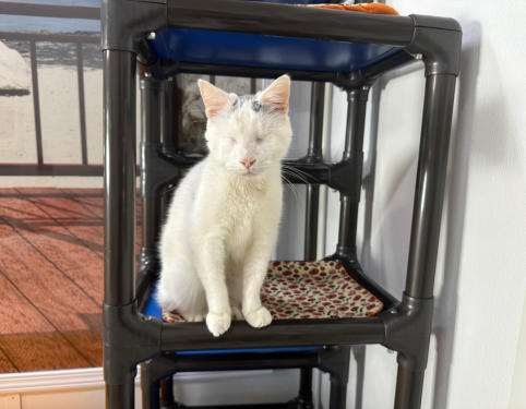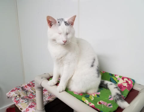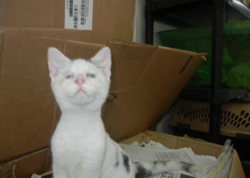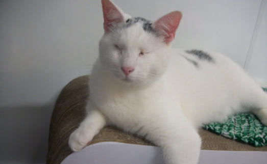 BlindGender: MaleApproximate age:Arrived From: Scotland County, NCArrival Day: 2011Mickey came to us as a tiny kitten from the high-kill Scotland County Humane Society where he had been dumped at night in their outside drop-off box. Poor Mickey was very sick with a severe upper respiratory infection. They realized no one was going to come looking for this little fellow so immediately released him to us. When we picked him up, he was so sick he had stopped eating. He went right to our vet and right away beganantibiotic treatment for the respiratory infection and his ear infections. At BCR he got a flea bath because he was infested with them. It took two days for Mickey to feel better and start eating on his own. If Mickey’s original owner had just gotten him treatment for his upper respiratory infection, he would have his eyes. However, being blind has not stopped Mickey in any way from enjoying his life. He’s one of the most loving cats at BCR and has a wonderful personality. He loves to sit in laps and knead! You can watch Mickey on our live 24-hour cameras is in House 2, Room 3. HERE