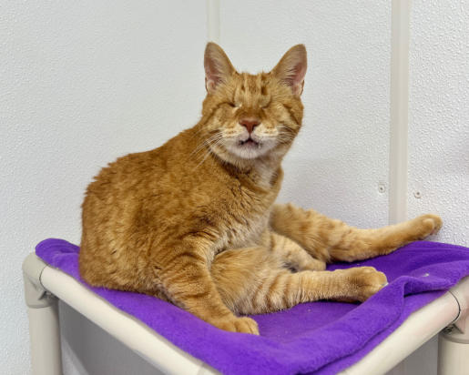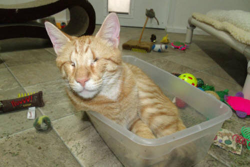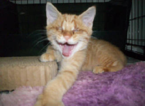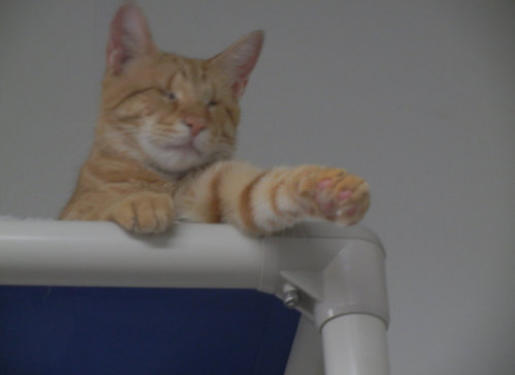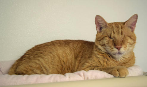 BlindGender: MaleApproximate age:Arrived From: MarylandArrival Day: 2011Morris was found as tiny stray kitten in Maryland. The kind woman who found him noticed his eyes were very damaged and called us to see if we could help him. She then drove him about six hours from Maryland to bring him to us. Morris was an adorable little kitten who, with BCR love and care, grew into a very loving friendly cat!He is known as BCR’s original escape artist and he never misses a chance to dart out of his room to see what’s going ! Morris really keeps everyone on their toes! He also loves to play and get attention! You might see Morris at play on our live 24-hour cameras in House 2, Room 5.
