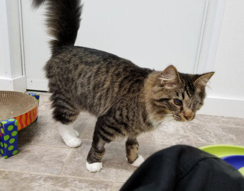 FeLV+Gender: FemaleApproximate age:Arrived From: GeorgiaArrival Day: August 2018Morticia is a leukemia positive cat who came from Georgia with two other cats. They had been placed in a foster home after being rescued, which was great until the fosterer was losing their home and alerted the rescue. They had no room for them and had made an appointment to euthanize all three cats them. The foster parent loved these cats so much and called is in a last-minute for their lives. We were so glad we could help! She drove all three cats six hours to get them to us. When she arrived, Morticia was understandably frightened but a very sweet girl. We had her damaged eye removed and later, due to some other complications, her other eye was removed. Today, Morticia is a lively, talkative and opinionated cat who will let you know if something is on her mind! She’s also known for being a hairdresser! She’s a wonderful cat and we’re so happy she is at BCR! You might see Morticia having a talk with someone on our live 24-hour cameras in House 2 , Room 4. HERE