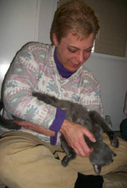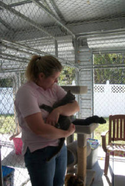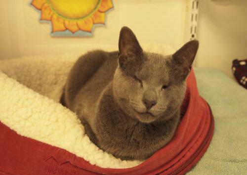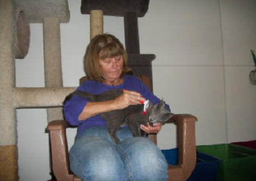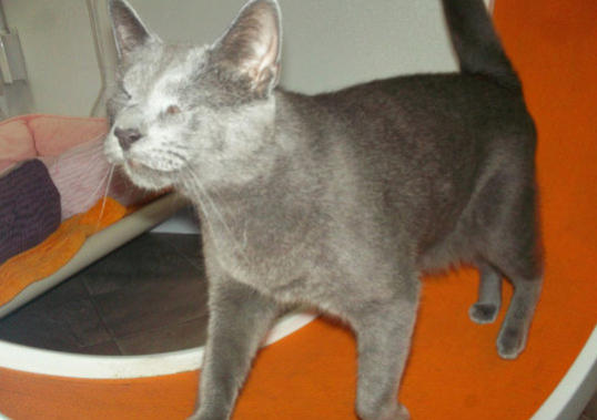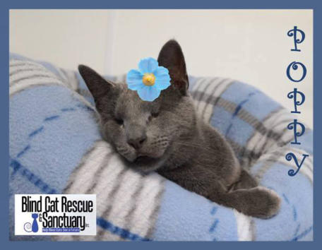 Poppy came to BCR along with her brother Jamie (who crossed the Rainbow Bridge in XXXX) after both were rescued from being strays in the streets ofNew York City - not a safe environment. The very king woman who rescuedthem both realized she couldn’t keep them and called us and we were very happyto welcome these tiny kittens to BCR. She also made a very nice donation tocover their immediate care needs. Which were serious. When they arrived,both Poppy and Jamie had very infected and ulcerated eye probably fromuntreated upper respiratory infection. Once they were old enough and weightedenough they had surgery to remove their eyes. In years since she came, Poppy has grown to be very sweet and loving girl with a big personality. She isextremely friendly and loves to climb on shoulders! She’s also been knownto be a bit of a hairdresser!You can catch Poppy riding on someone’s shoulders on our live24-hour cameras in House 2, Room 2. You can watch HERE.