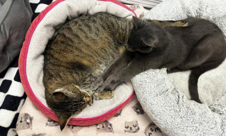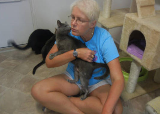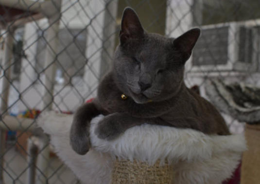 Poppy came to BCR along with her brother Jamie (who crossed the Rainbow Bridge in XXXX) after both were rescued from being strays in the streets of New York City - not a safe environment. The very king woman who rescued them both realized she couldn’t keep them and called us and we were very happy to welcome these tiny kittens to BCR. She also made a very nice donation to cover their immediate care needs. Which were serious. When they arrived,both Poppy and Jamie had very infected and ulcerated eye probably from untreated upper respiratory infection. Once they were old enough and weighted enough they had surgery to remove their eyes. In years since she came, Poppy has grown to be very sweet and loving girl with a big personality. She is extremely friendly and loves to climb on shoulders! She’s also been known to be a bit of a hairdresser!You can catch Poppy riding on someone’s shoulders on our live24-hour cameras in House 2, Room 2. You can watch HERE.