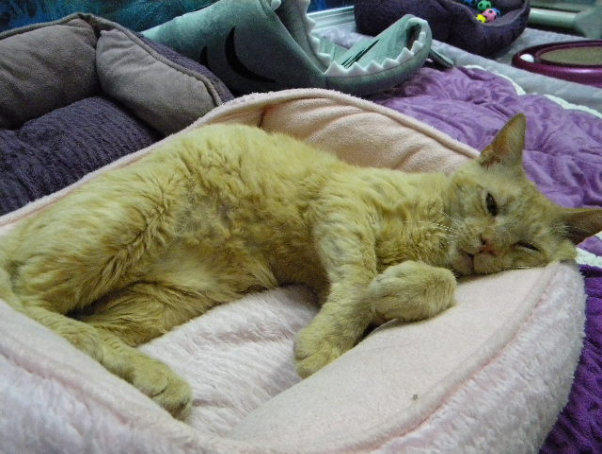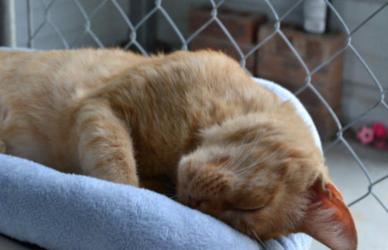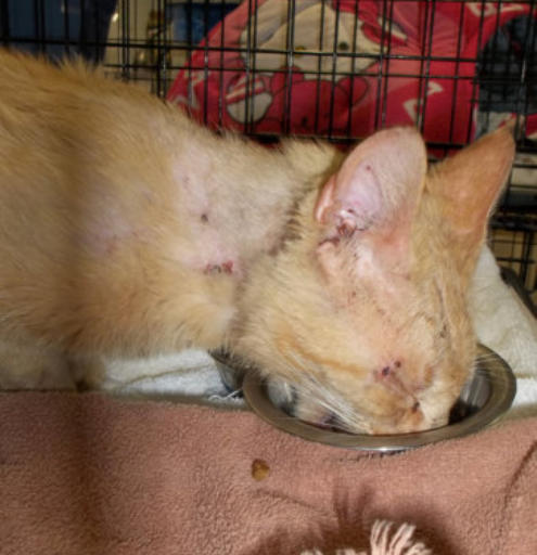 A few weeks after arriving. Enjoying the a/c plenty of food and soft beds. Sores are healing