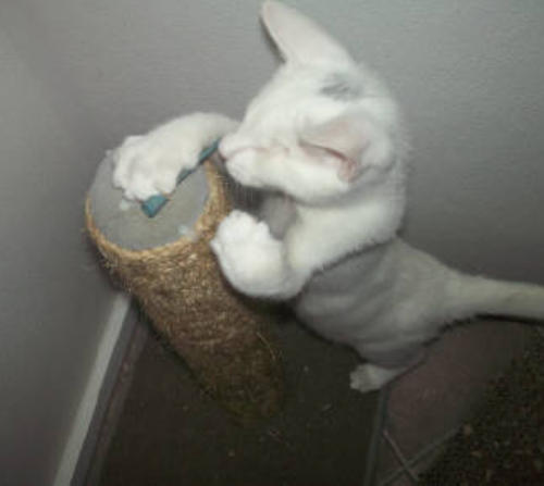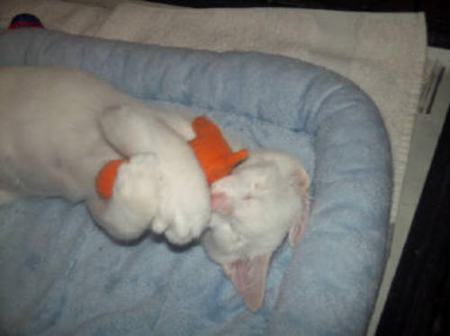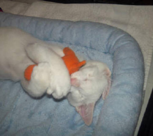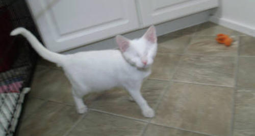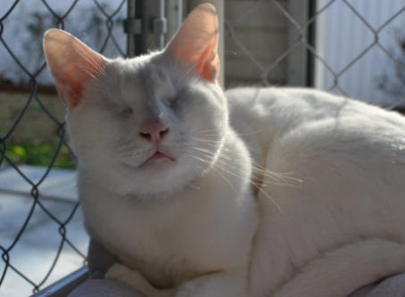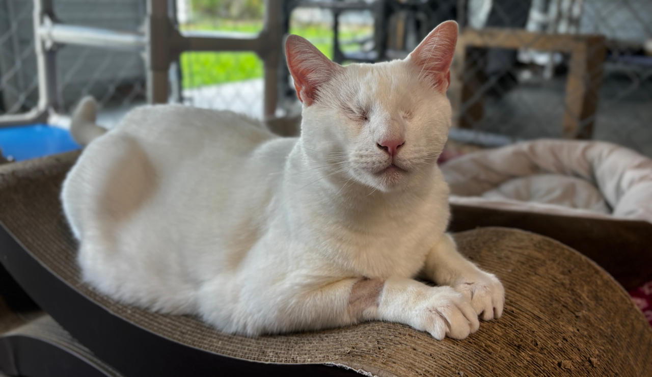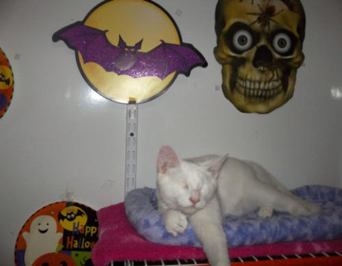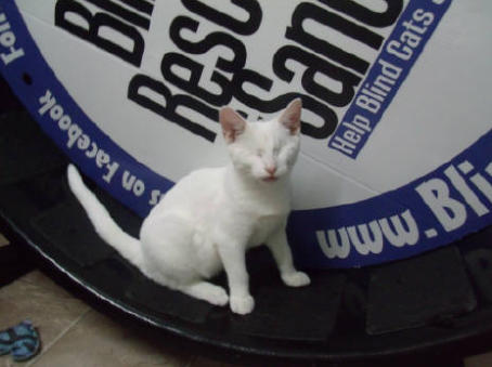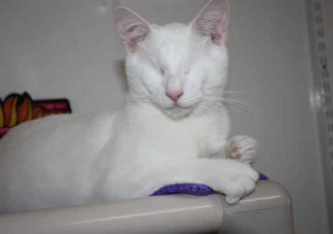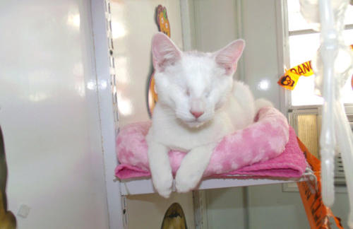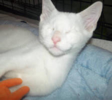 BlindGender: MaleApproximate age:Arrived From: FloridaArrival Day: 2013Smudge was found as a stray kitten in Florida, and was taken to a local vet’s office. His rescuer desperately wanted him to be safe and reached out to us. The vet was willing to make sure he was healthy for us. Smudge then went to Atlantic Animal Clinicin Pompano Beach, Florida, where he could stay until he could get to BCR. (We thank this wonderful practice for helping Smudge so much!). Two BCR volunteers were vacationing in Florida and agreed to pick him up and bring Smudge back to BCR. Sweet Smudge owes his life to all those people who went the extra mile to help him! Smudge got his name from the one dark smudge of fur on his head he had when he was little. As he’s grown up now, the smudge has gone so he’s sometimes called Smudge-less! He’s a wonderful kitty and we’re so thankful he’s at BCR! Little guy shows it takes a village to save lives some times. You may watch him on our live 24-hour cameras in House 2, Room 2.MeShare camera