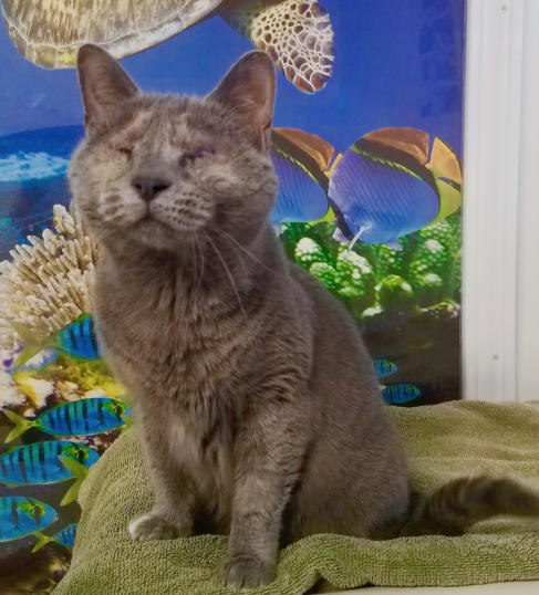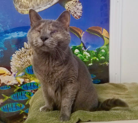 BlindGender: FemaleApproximate age:Arrived From: Asheville, NCArrival Day: December 2018Sophie was pretty scared when she first came to BCR because there had been so many changes in her life! She was living in a sanctuary that ran into financial difficulties. That sanctuary merged with another one and were then taken over by a third shelter to save the lives of their animals. That shelter saved more than 85 animals! We reached out to them and offered to take Sophie. When she came, her eyes were in very bad shape and certainly painful for her. She had endured that for four years and we rushed her to get her eyes removed. Sophie recovered from that ordeal and has settled into BCR very well. This beautiful girl loves people but can take or leave other cats – she pretty much ignores them! Sophie is famous for her one orange “toe.” You might see this toe and Sophie on our live 24-hour cameras in House 2, Room 2. Watch HERE!