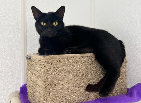 loves attention. She’d rather focus on people than the other cats but she’s doing