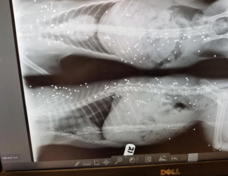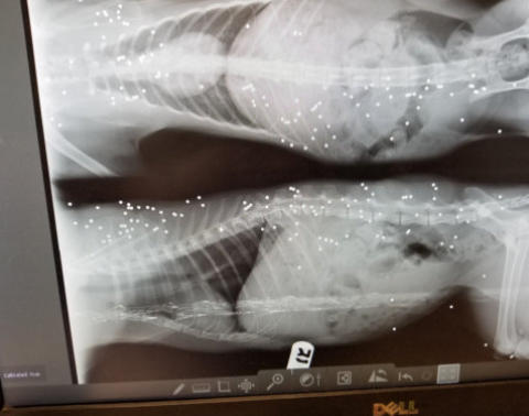 an innocent animal. That is bird shot, I would guess from
