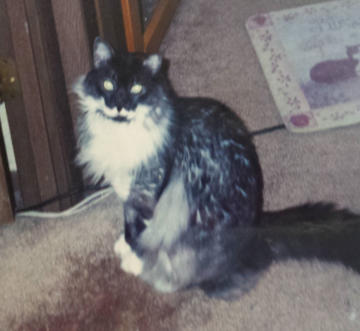 In memory of our dear sweet Jazzy. When we went to adopt a kitty I stopped by your cage and you stuck your little paw out and grabbed my arm.