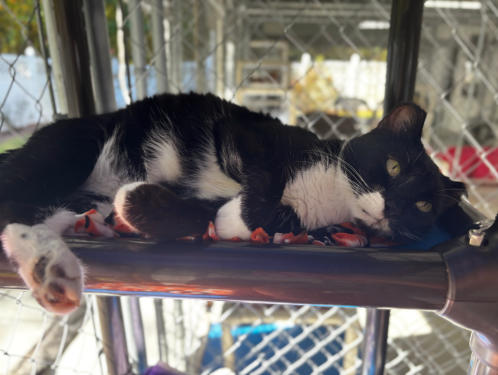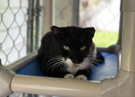 cat after the rescue was raided. Out of the 43 cats removed, the 17 with FeLV were