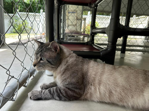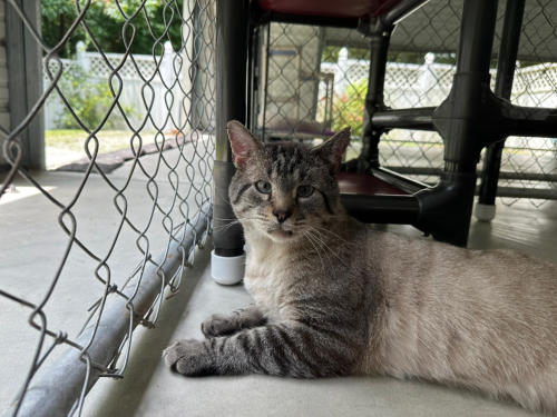 Chief is a blue-eyed Siamese cat who was found as a stray in Burlington, North