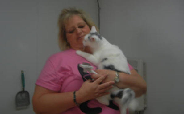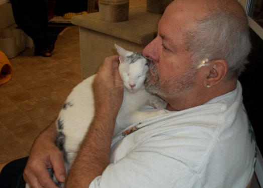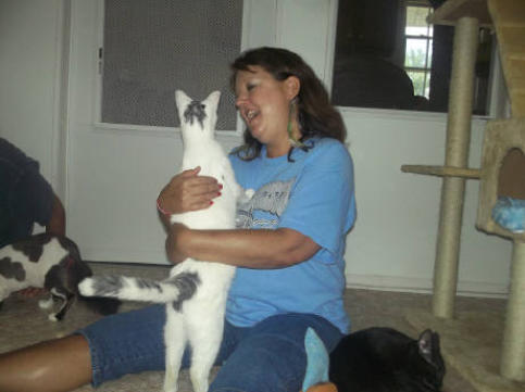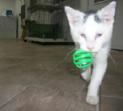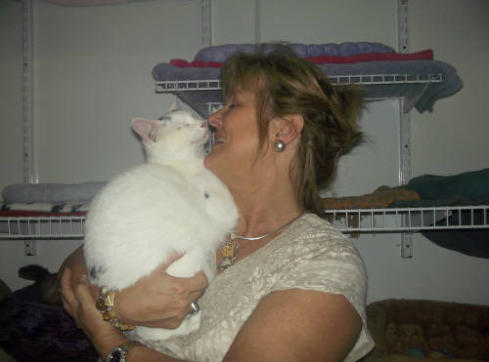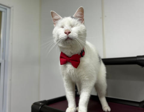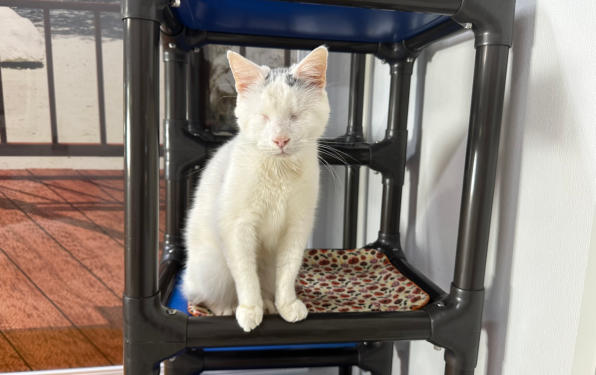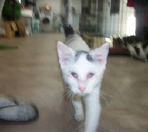 BlindGender: MaleApproximate age:Arrived From: Scotland County, NCArrival Day: 2011Mickey came to us as a tiny kitten from the high-kill Scotland County Humane Society where he had been dumped at night in their outside drop-off box. Poor Mickey was very sick with a severe upper respiratory infection. They realized no one was going to come looking for this little fellow so immediately released him to us. When we picked him up, he was so sick he had stopped eating. He went right to our vet and right away beganantibiotic treatment for the respiratory infection and his ear infections. At BCR he got a flea bath because he was infested with them. It took two days for Mickey to feel better and start eating on his own. If Mickey’s original owner had just gotten him treatment for his upper respiratory infection, he would have his eyes. However, being blind has not stopped Mickey in any way from enjoying his life. He’s one of the most loving cats at BCR and has a wonderful personality. He loves to sit in laps and knead! You can watch Mickey on our live 24-hour cameras is in House 2, Room 3. HERE