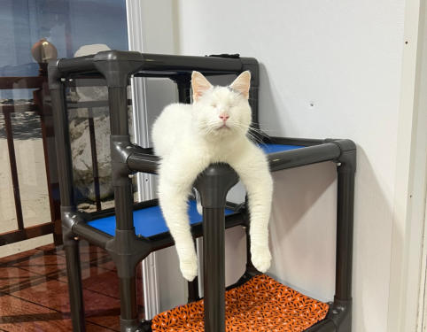 BlindGender: MaleApproximate age:Arrived From: Scotland County, NCArrival Day: 2011Mickey came to us as a tiny kitten from the high-kill Scotland County Humane Society where he had been dumped at night in their outside drop-off box. Poor Mickey was very sick with a severe upper respiratory infection. They realized no one was going to come looking for this little fellow so immediately released him to us. When we picked him up, he was so sick he had stopped eating. He went right to our vet and right away began antibiotic treatment for the respiratory infection and his ear infections. At BCR he got a flea bath because he was infested with them. It took two days for Mickey to feel better and start eating on his own. If Mickey’s original owner had just gotten him treatment for his upper respiratory infection, he would have his eyes. However, being blind has not stopped Mickey in any way from enjoying his life. He’s one of the most loving cats at BCR and has a wonderful personality. He loves to sit in laps and knead! You can watch Mickey on our live 24-hour cameras is in House 2, Room 3. HERE