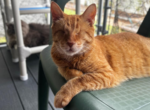 BlindGender: MaleApproximate age:Arrived From: MarylandArrival Day: 2011Morris was found as tiny stray kitten in Maryland. The kind woman who found him noticed his eyes were very damaged and called us to see if we could help him. She then drove him about six hours from Maryland to bring him to us. Morris was an adorable little kitten who, with BCR love and care, grew into a very loving friendly cat!He is known as BCR’s original escape artist and he never misses a chance to dart out of his room to see what’s going ! Morris really keeps everyone on their toes! He also loves to play and get attention! You might see Morris at play on our live 24-hour cameras in House 2, Room 5.