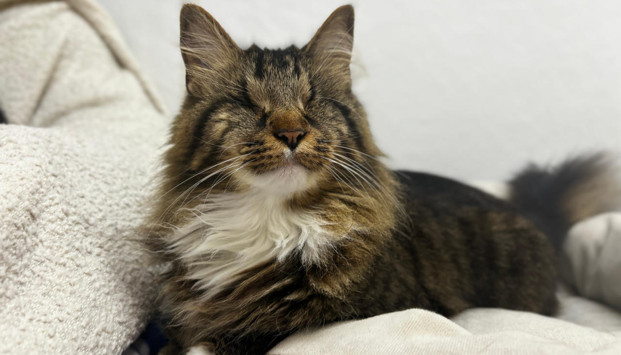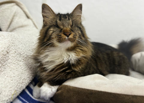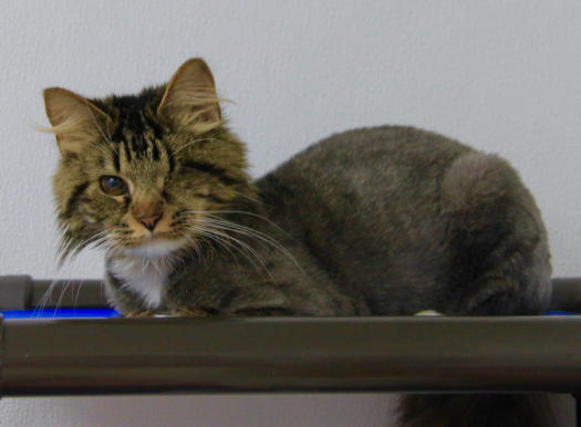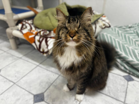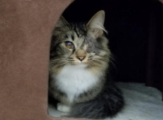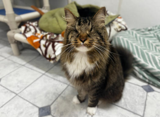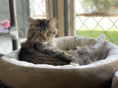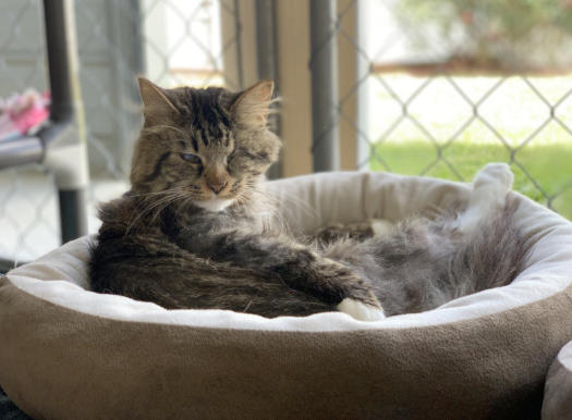 FeLV+Gender: FemaleApproximate age:Arrived From: GeorgiaArrival Day: August 2018Morticia is a leukemia positive cat who came from Georgia with two other cats. They had been placed in a foster home after being rescued, which was great until the fosterer was losing their home and alerted the rescue. They had no room for them and had made an appointment to euthanize all three cats them. The foster parent loved these cats so much and called is in a last-minute for their lives. We were so glad we could help! She drove all three cats six hours to get them to us. When she arrived, Morticia was understandably frightened but a very sweet girl. We had her damaged eye removed and later, due to some other complications, her other eye was removed. Today, Morticia is a lively, talkative and opinionated cat who will let you know if something is on her mind! She’s also known for being a hairdresser! She’s a wonderful cat and we’re so happy she is at BCR! You might see Morticia having a talk with someone on our live 24-hour cameras in House 2 , Room 4. HERE