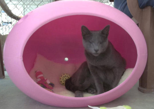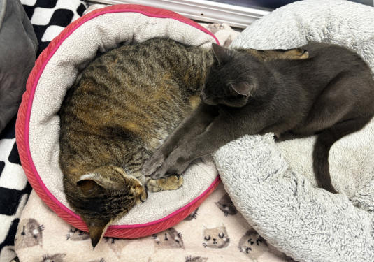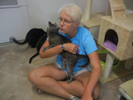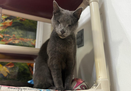 Poppy came to BCR along with her brother Jamie (who crossed the Rainbow Bridge in XXXX) after both were rescued from being strays in the streets of New York City - not a safe environment. The very king woman who rescued them both realized she couldn’t keep them and called us and we were very happy to welcome these tiny kittens to BCR. She also made a very nice donation to cover their immediate care needs. Which were serious. When they arrived,both Poppy and Jamie had very infected and ulcerated eye probably from untreated upper respiratory infection. Once they were old enough and weighted enough they had surgery to remove their eyes. In years since she came, Poppy has grown to be very sweet and loving girl with a big personality. She is extremely friendly and loves to climb on shoulders! She’s also been known to be a bit of a hairdresser!You can catch Poppy riding on someone’s shoulders on our live24-hour cameras in House 2, Room 2. You can watch HERE.