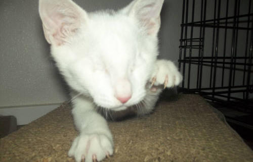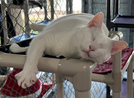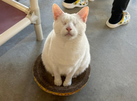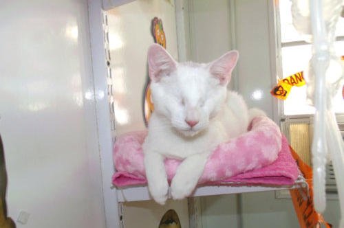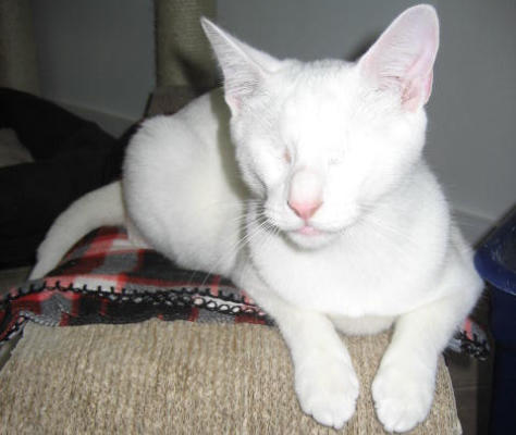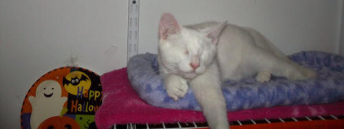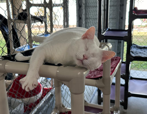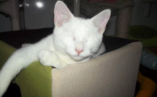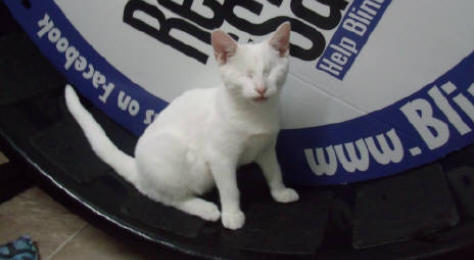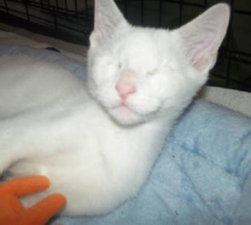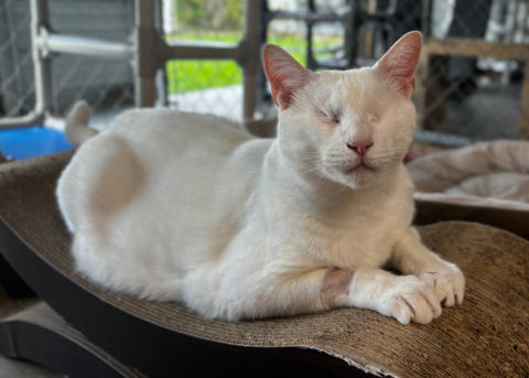 BlindGender: MaleApproximate age:Arrived From: FloridaArrival Day: 2013Smudge was found as a stray kitten in Florida, and was taken to a local vet’s office. His rescuer desperately wanted him to be safe and reached out to us. The vet was willing to make sure he was healthy for us. Smudge then went to Atlantic Animal Clinicin Pompano Beach, Florida, where he could stay until he could get to BCR. (We thank this wonderful practice for helping Smudge so much!). Two BCR volunteers were vacationing in Florida and agreed to pick him up and bring Smudge back to BCR. Sweet Smudge owes his life to all those people who went the extra mile to help him! Smudge got his name from the one dark smudge of fur on his head he had when he was little. As he’s grown up now, the smudge has gone so he’s sometimes called Smudge-less! He’s a wonderful kitty and we’re so thankful he’s at BCR! Little guy shows it takes a village to save lives some times. You may watch him on our live 24-hour cameras in House 2, Room 2.MeShare camera