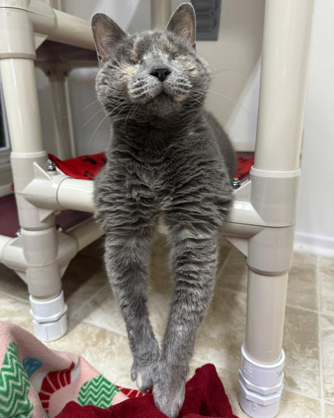 BlindGender: FemaleApproximate age:Arrived From: Asheville, NCArrival Day: December 2018Sophie was pretty scared when she first came to BCR because there had been so many changes in her life! She was living in a sanctuary that ran into financial difficulties. That sanctuary merged with another one and were then taken over by a third shelter to save the lives of their animals. That shelter saved more than 85 animals! We reached out to them and offered to take Sophie. When she came, her eyes were in very bad shape and certainly painful for her. She had endured that for four years and we rushed her to get her eyes removed. Sophie recovered from that ordeal and has settled into BCR very well. This beautiful girl loves people but can take or leave other cats – she pretty much ignores them! Sophie is famous for her one orange “toe.” You might see this toe and Sophie on our live 24-hour cameras in House 2, Room 2. Watch HERE!